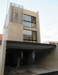 コンクリートが使われている3階建ての住宅です。
